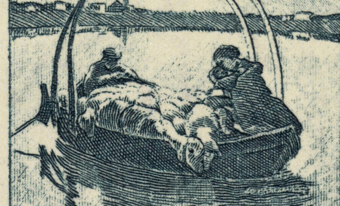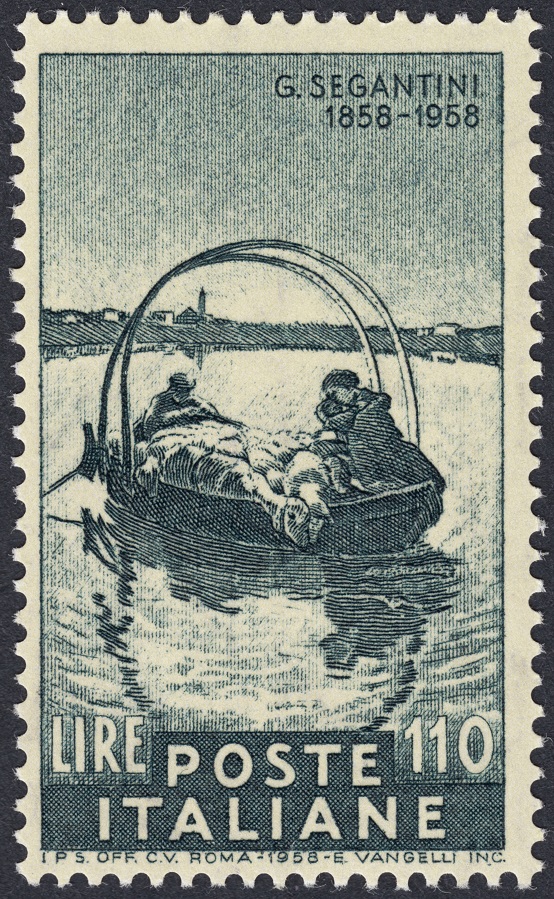 El artista italiano Giovanni Segantini hizo también uso de la claridad para crear en 1886 esta obra inquietante y estremecedora: Ave María en transbordador. Más de setenta años después, el grabador italiano Egidio Vangelli matizó con el buril la pesadilla de Segantini.