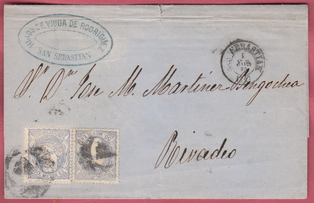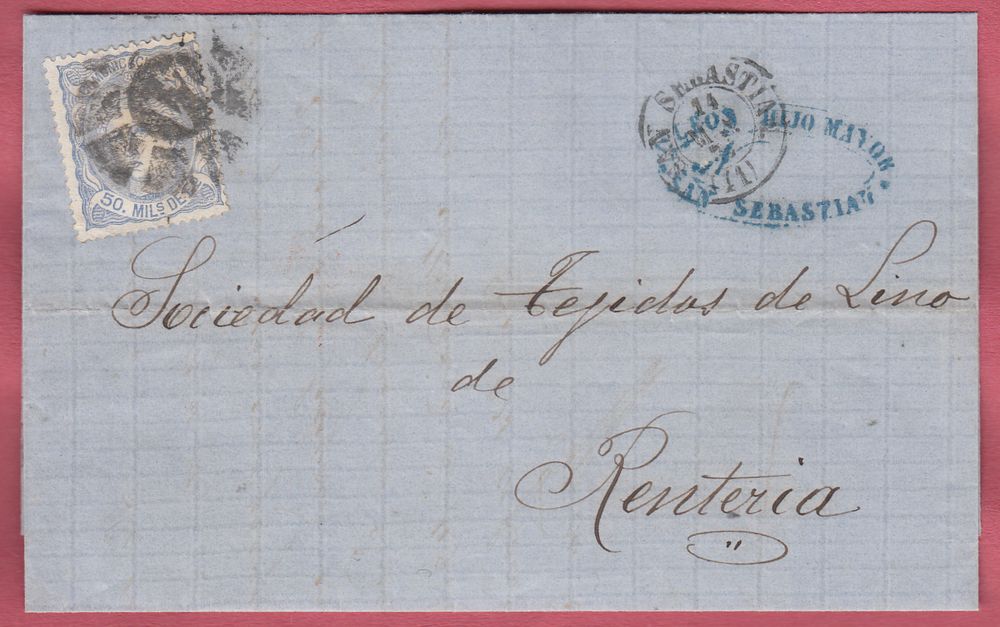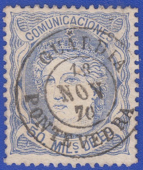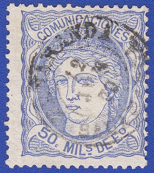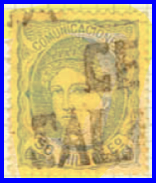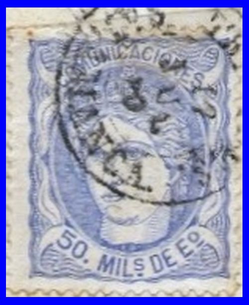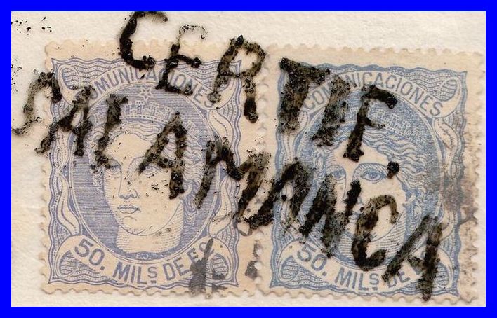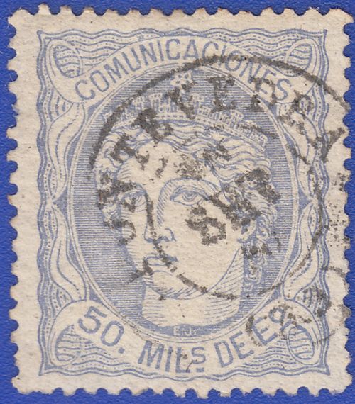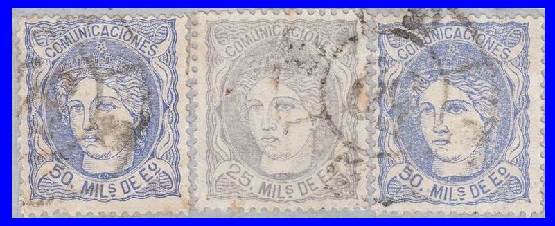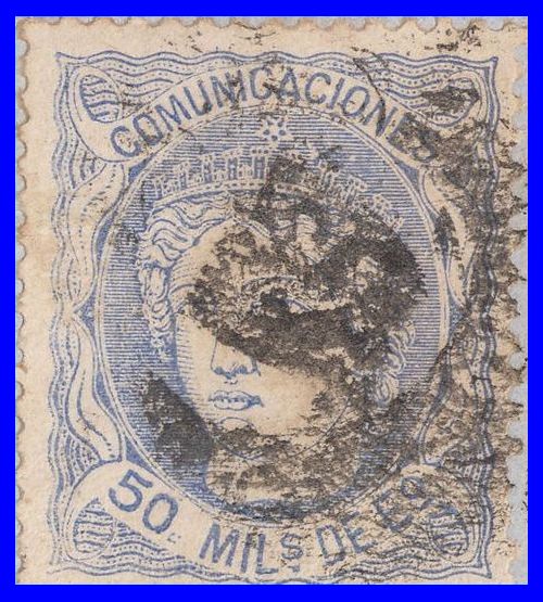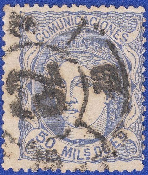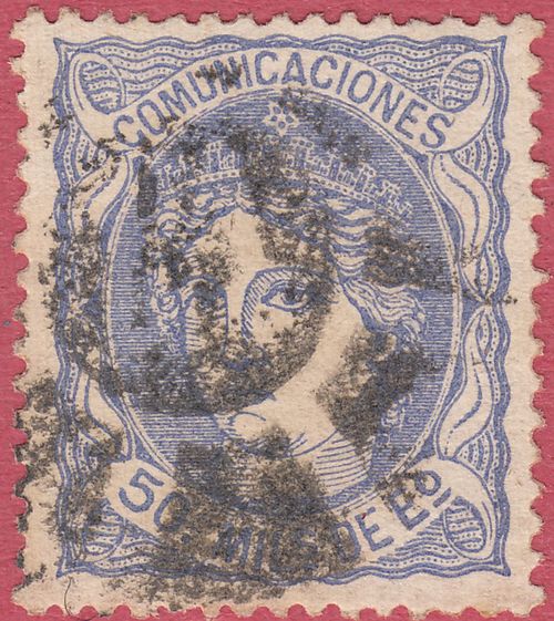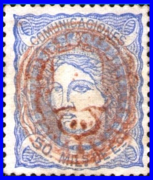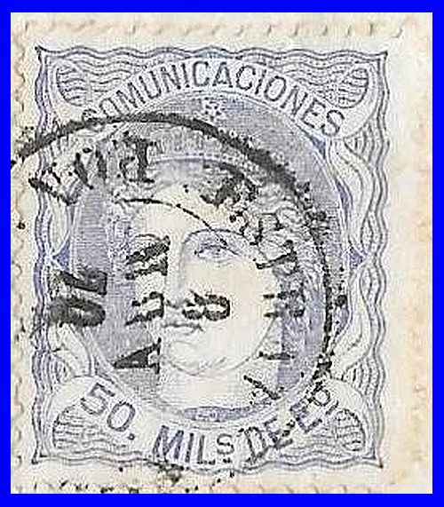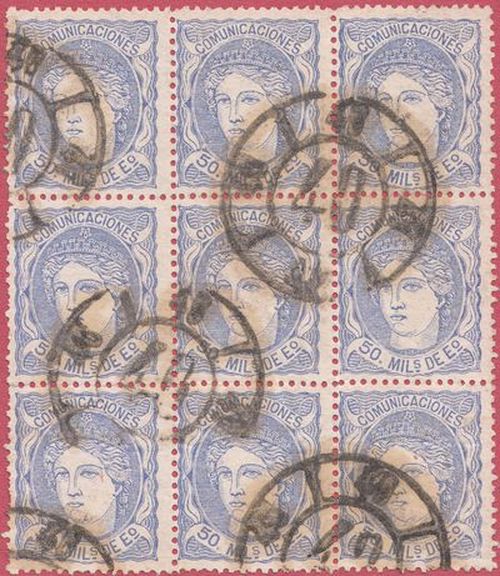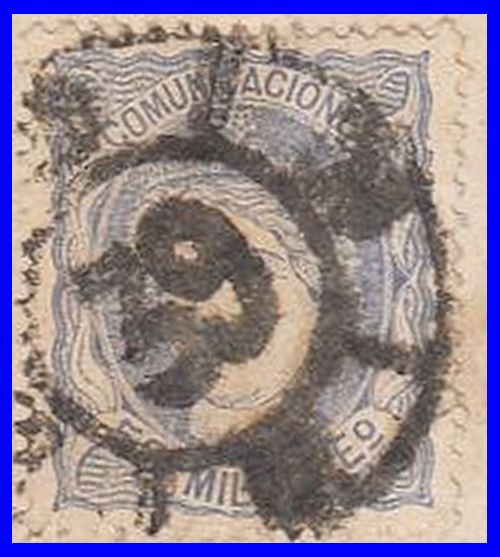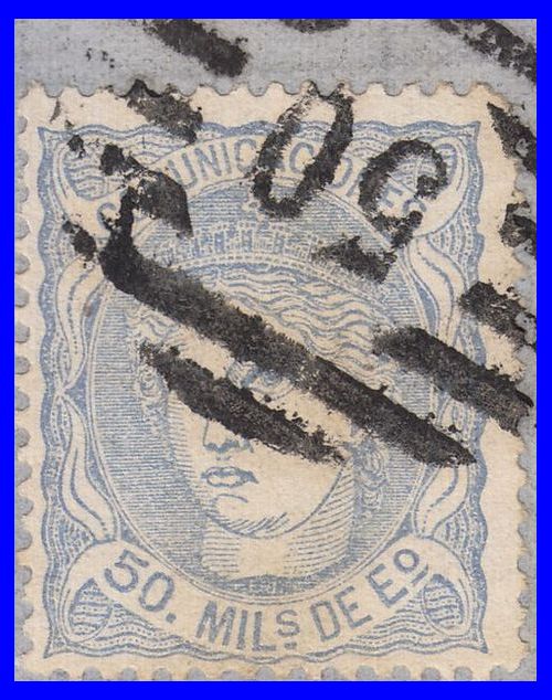 Utilizó variedad de matasellos. Entre ellos la rueda de carreta Nº 50 y la parrilla de ocho lineas con el Nº 50 centrado