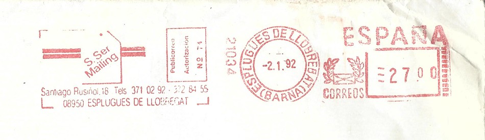 FRAMA Nº 5.587 / BARCELONA / MIDA. GUSTAVO PIQUER