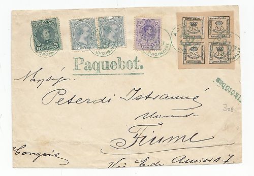 Bien, como se ve en el enlace colgado, el matasellos dice Tengerentul y era un cuño maritimo que se aplicaba en la linea maritima privada hungara Adria.