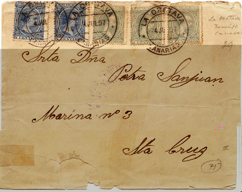 Os muestro una carta muy bonita que va enviada desde La Orotava a Santa cruz de Tenerife con un espectacular franqueo peloniano. Espero que os guste a todos.