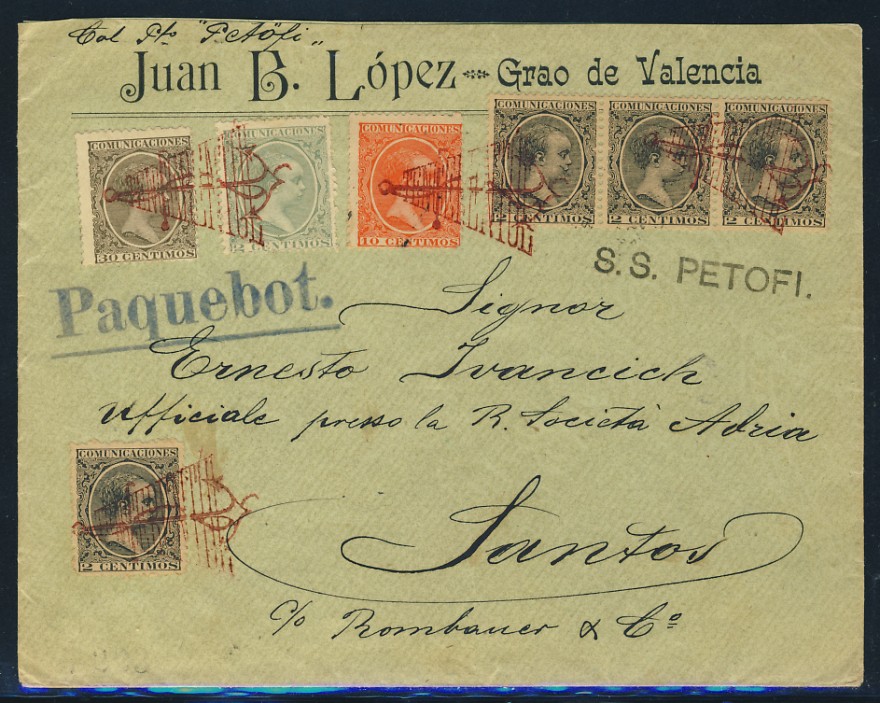 Como podéis observar se dice que "los sellos eran matasellados por las siguientes marcas (entre las que está la del sello de Rucmervell) y otras (lo que no aclara la autenticidad o no de la marca del frontal, que no setá ilustrada en la web)". Al ser una empresa privada habría que ver qué tarifas eran válidas para su servicio, o si estaban al corriente de los sellos en vigor en cada país en que fondeaban, o si el vigor de los mismos era necesario para pagar los portes. En fin, un tema creoque poco estudiado y que por las pocas piezas que habrá no dará para mucha más teorización sobre el asunto.