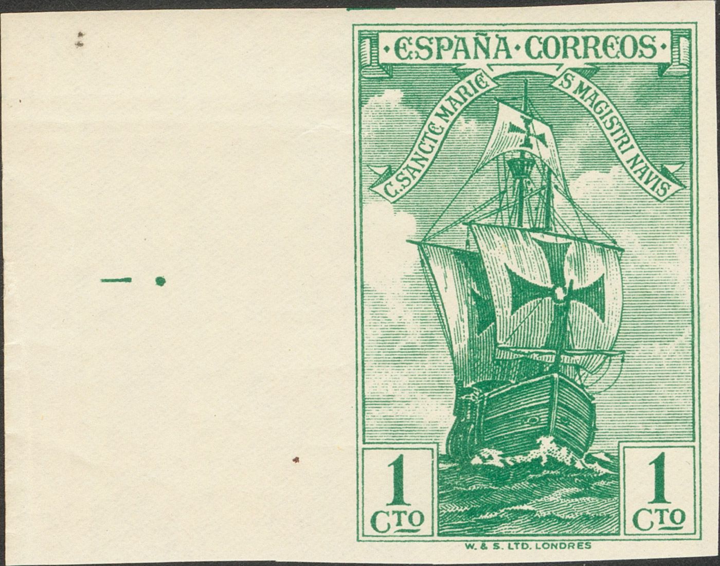 Cambio de color sin dentar del 1 céntimo verde de la nao capitana 'Santa María' (531ccs).