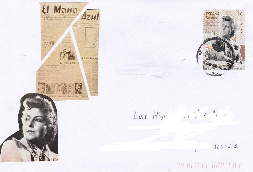 En cuanto al personaje de Maria Teresa León, es cierto que merecía un sello y yo busqué , como dices, adornar los sobres con su imagen y la de la famosa revista "El mono azul", y hacer el envío un poco más dinámico.