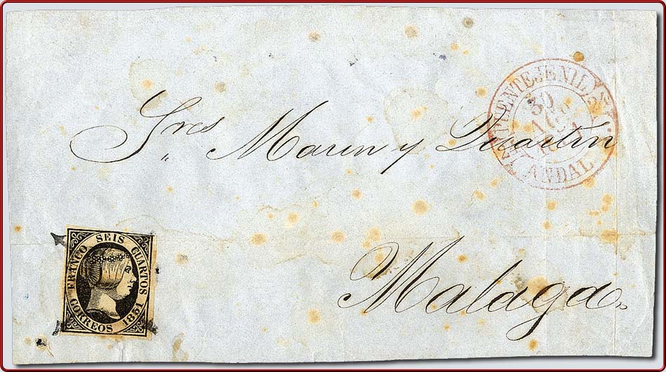 He rebuscado entre mis cosas hasta hallar el #6 en frontal con el Baeza al lado de "PUENTEJENIL" del 30 AGOSTO 1.851 ... que fue el original del que el dibujante de la obra P.E. de Manolo Tizón sacó modelo para ilustrar el Baeza que no hallaba en ninguna de las colecciones de la época ... estoy hablando de 1.974 ...