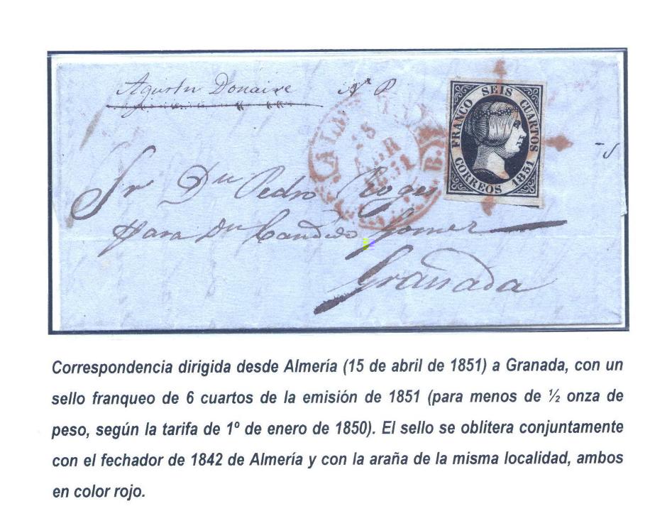 Un error en el año del fechador en sobrescrito salido de Mazarrón ... salido por Cartagena con fechador 30 Septiembre 1.850 en lugar de 1.851 ... destino Barcelona