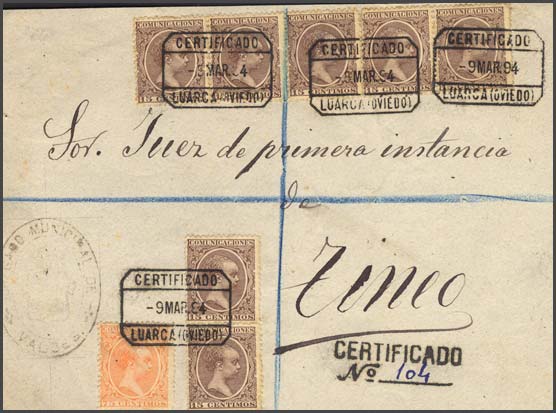 mariomirman escribió:Yo tambiéne estimo entre 500 y mil (por fiarmelo largo) las cartas del Pelón. Pero ojo... de la tarifa de certificados 1889/1895, esto es, con 75 céntimos de vellón por este derecho son rarous rarous rarous. De estos no más de una docena o dos. Con el abaratamiento de la tarifa en 1895, y la no necesidad de entregar las envueltas, se multiplican exponencialmente, y no le son aplicables los criterios de rareza del maestro Perpiñá. :wink: