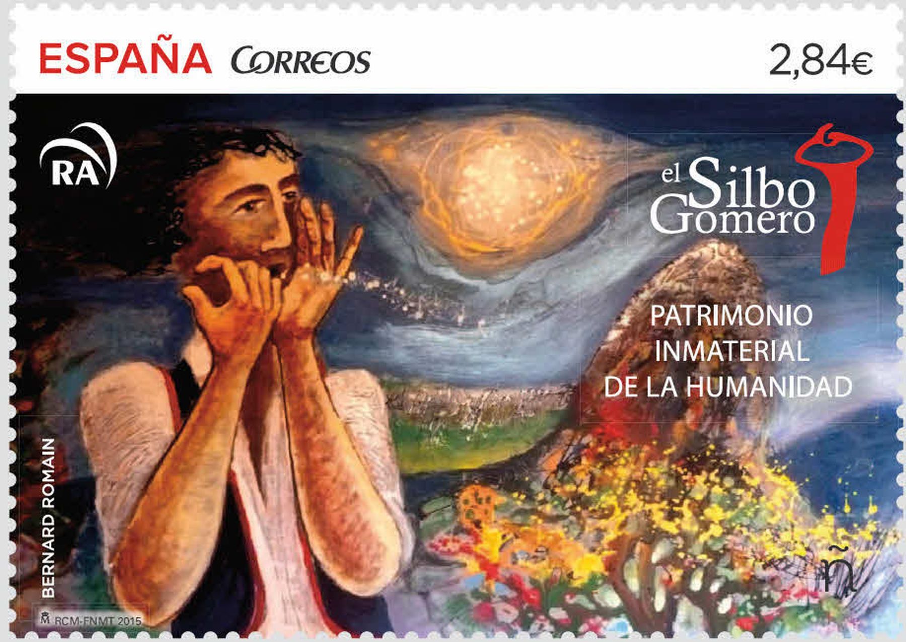 Dios mediante, el día 28 de julio de 2015 se emitirá una serie de sellos de correo denominada «Patrimonio Inmaterial de la Humanidad». La serie consta de dos sellos dedicados, respectivamente a «el Silbo Gomero» (con Realidad Aumentada y sonido) y a la «Dieta Mediterránea» (con efecto «de aceite» en una parte del sello).