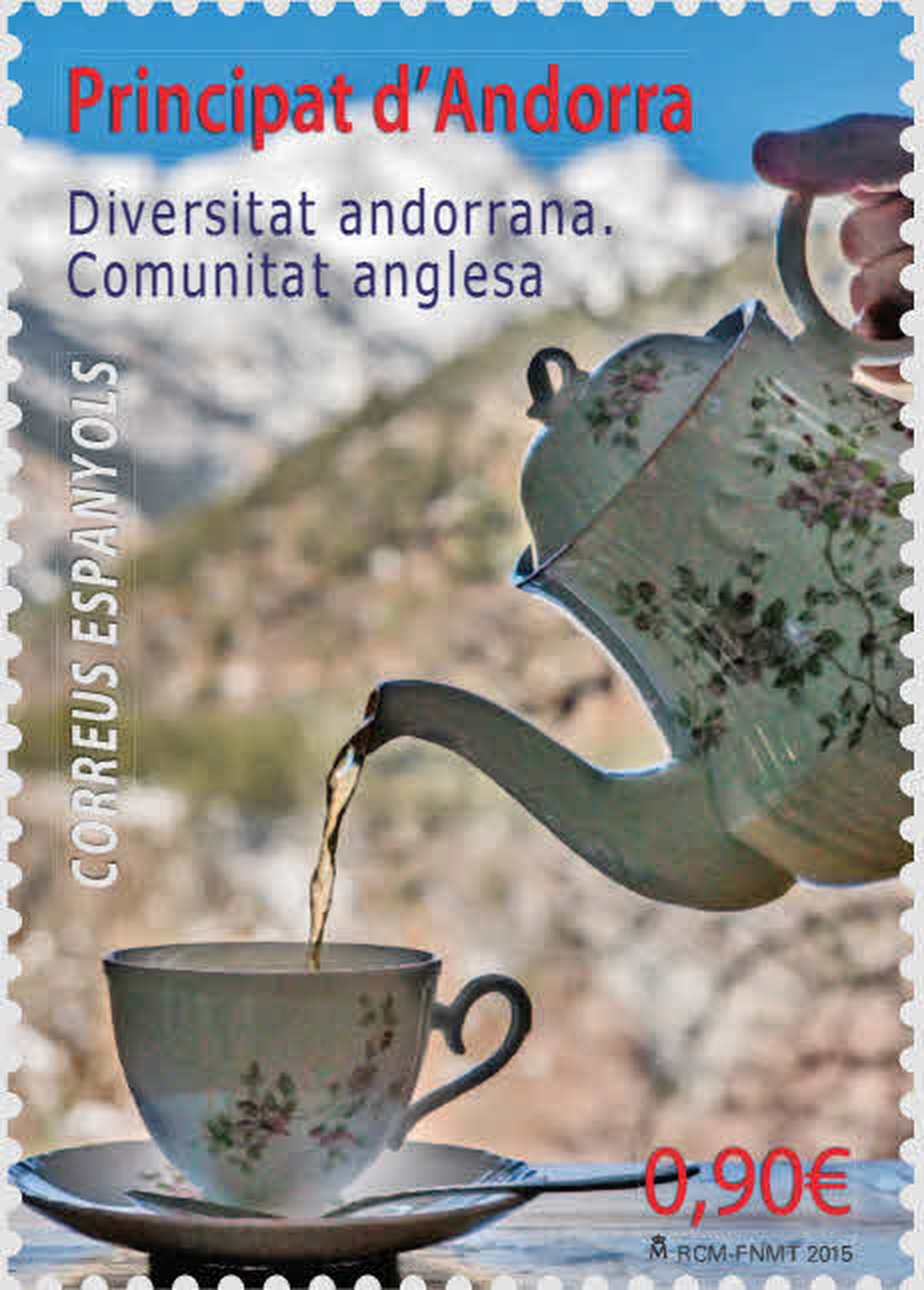 Ayer, día 8 de julio de 2015 se ja puesto en circulación un sello de correo correspondiente a la serie del Principado de Andorra «Diversitat andorrana» denominado «Comunitat anglesa».