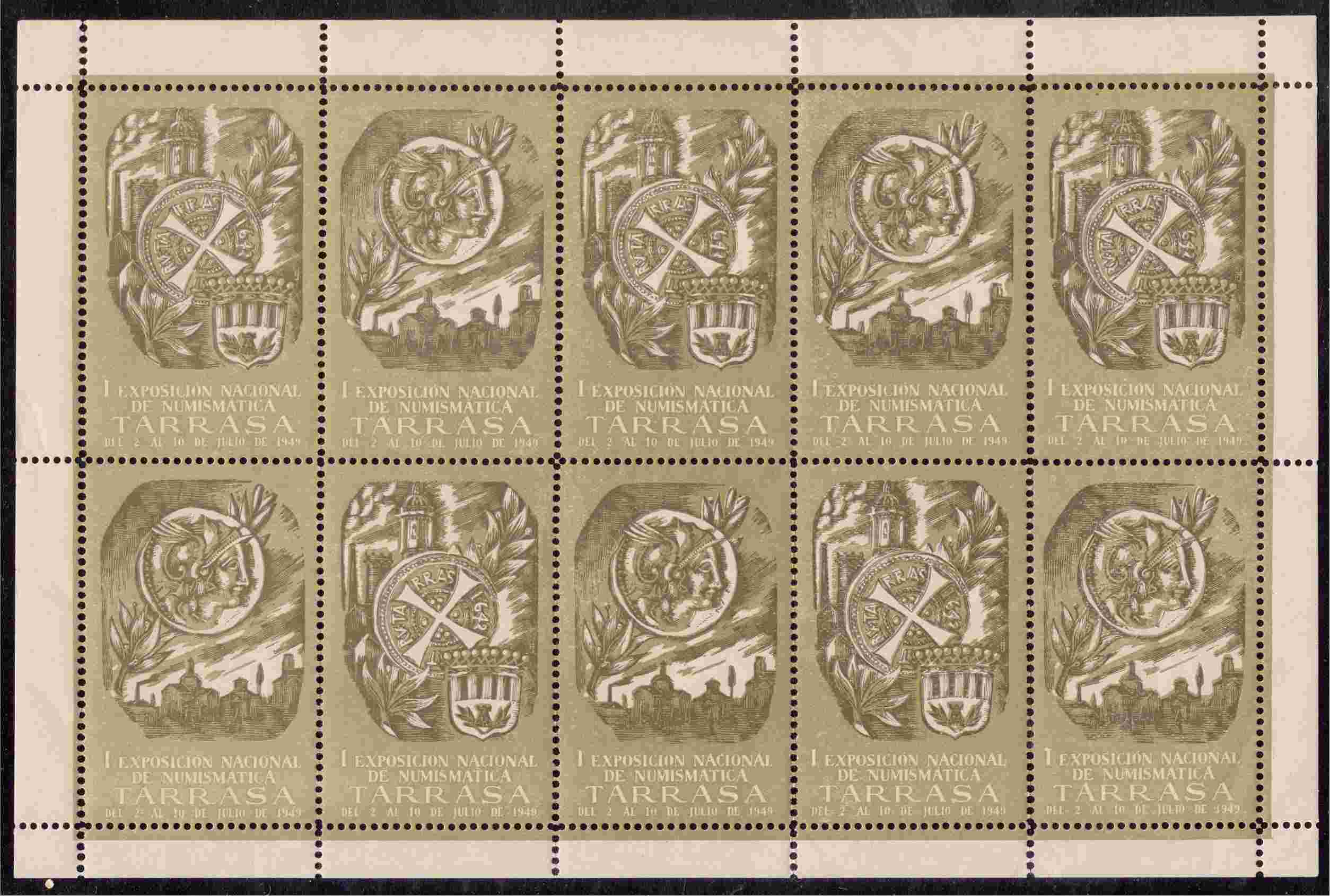 Esta ùltima que has subido de Tarrasa es de la I Exposición Numismática, va en pareja vertical con otra y están alternadas en el pliego que subo a continuación.