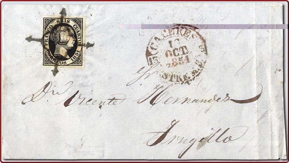 La pregunta es que hace el matasello parrilla de Madrid sobre el 6 cuartos de 1851. Este matasello se usó de 4 enero a 13 de marzo de 1850!!!.