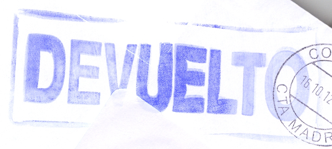 DEVUELTO (color azul) (utilizada en Avilés, Asturias, el 10/10/2012)