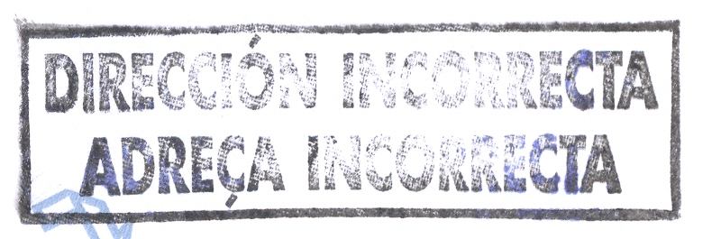 DIRECCIÓN INCORRECTA / ADREÇA INCORRECTA (color negro) (utilizada en El Vendrell, Tarragona, el 17/10/2012)