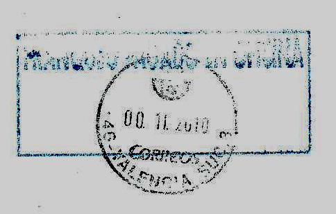 FPO "de fortuna" de la Suc 3 de València, con fecha "00.11.2010" en carta a Barcelona del 09.11.10, según consta en la marca de CTA - VALENCIA, que también figura (invertida) en el sobre.