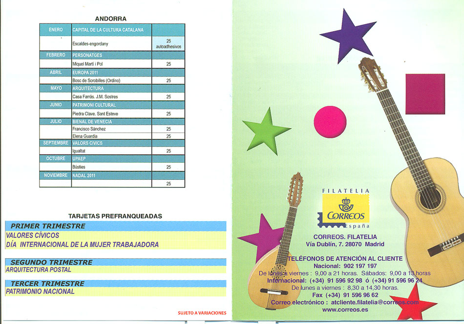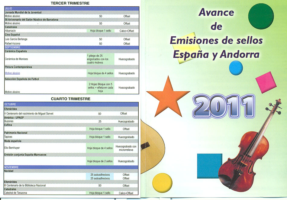 Hoy he recibido un sobre de Correos en el que venia, además de un regalo :shock: , el programa de las emisiones de España y Andorra ( un triptico ) para el 2011