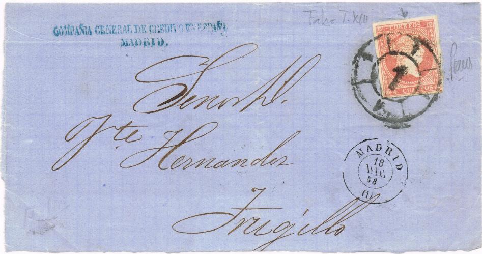 El segundo, el chungo, es muy difícil clasificar el tipo por su mala impresión. Y efectivamente se encuentra en una carta circulada de Barcelona a Girona de 6 mayo de 1859.