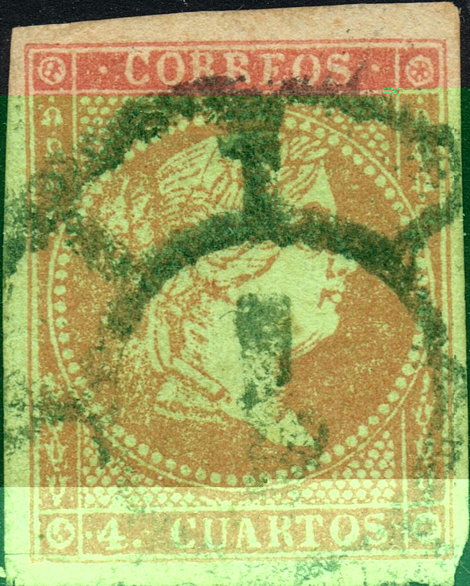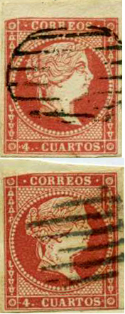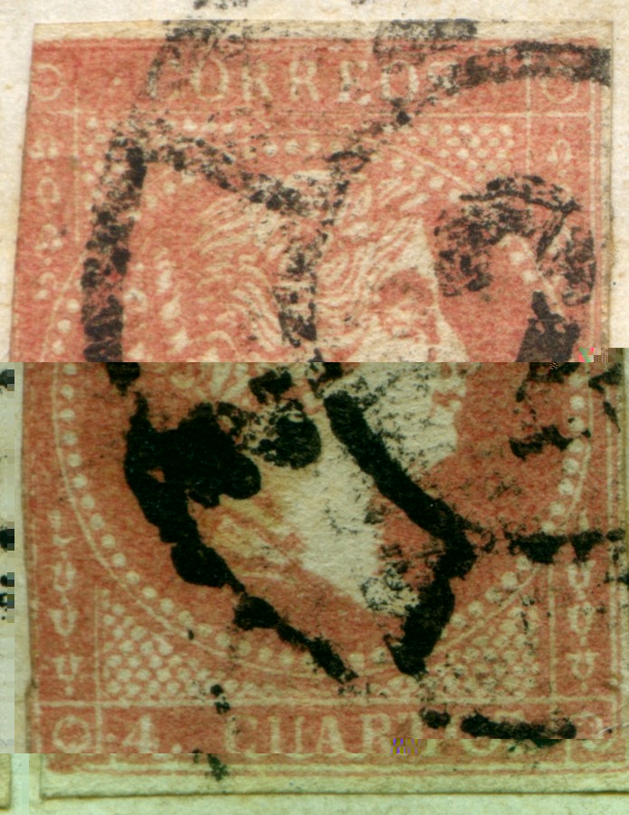 Si ois fijais vereis como en el primer sello hay un punto de más delante del 4; este cuño lo tengo localizado.