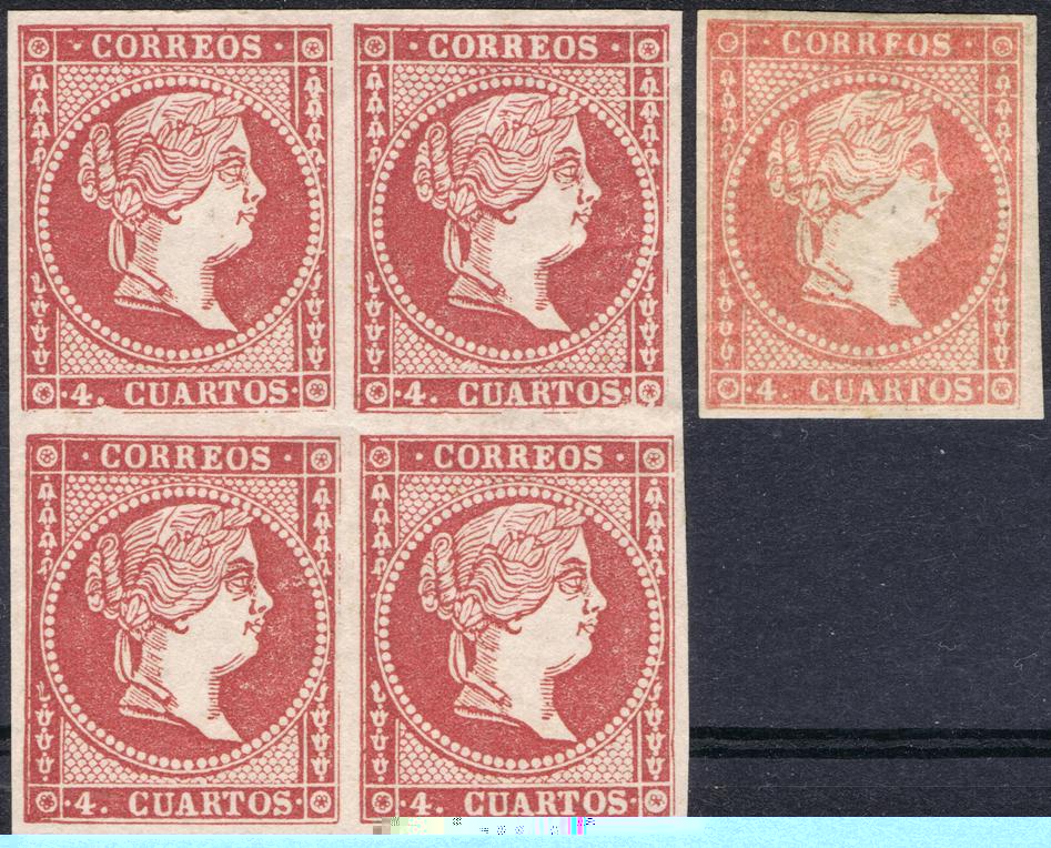 Como he dicho alguna vez, los que plancheron el número uno de España, pudieron encontrar unas particularidades en cada matriz que se repetían del primer al último sello impreso. Aquí no, aquí se van produciendo los fallos y a veces te encuentras fallos muy pronunciados que en otros bloques no aparecen por ser de impresiones anteriores.