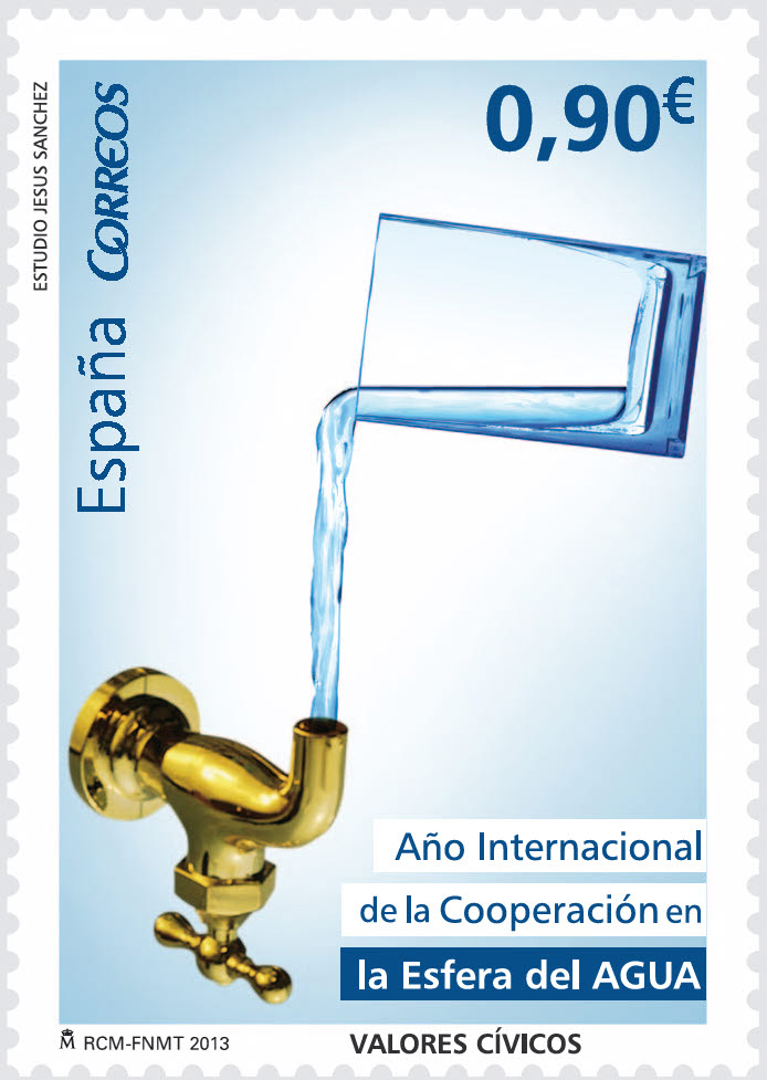 La Asamblea General de las Naciones Unidas ha declarado 2013 Año Internacional de la Cooperación en la Esfera del Agua, tema al que se dedica este sello autoadhesivo de la serie Valores Cívicos.