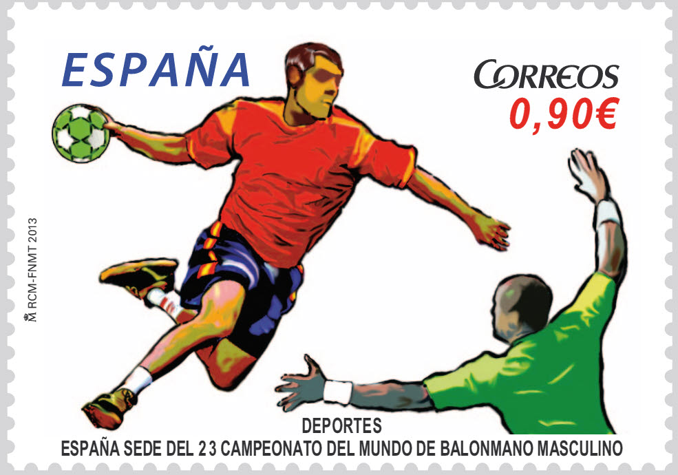 Por primera vez en la historia deportiva de balonmano, se celebra en España el Campeonato Mundial de Balonmano Masculino, competición al más alto nivel al que se dedica este sello de la serie Deportes.