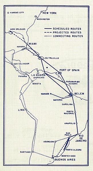 Sabiendo que la carta sale en noviembre (casi invierno) y que es censurada en San Juan de P. R., yo apostaría una cerveza bien grande a que siguió la ruta invernal de la línea FAM-18, esto es, Lisboa-Azores-Bolama-Natal-Trinidad-San Juan (pasa la censura americana), de allí retorno a Natal en el vuelo de regreso para enlazar con la ruta de PAA de Suramérica, camino de su destino, Buenos Aires.