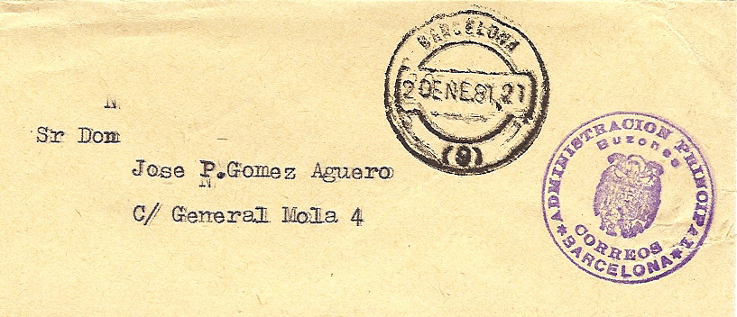 Por consiguiente, en la fecha mostrada en la carta del mensaje anterior, el escudo de armas del tampón de la Administración Principal de Barcelona era el vigente.