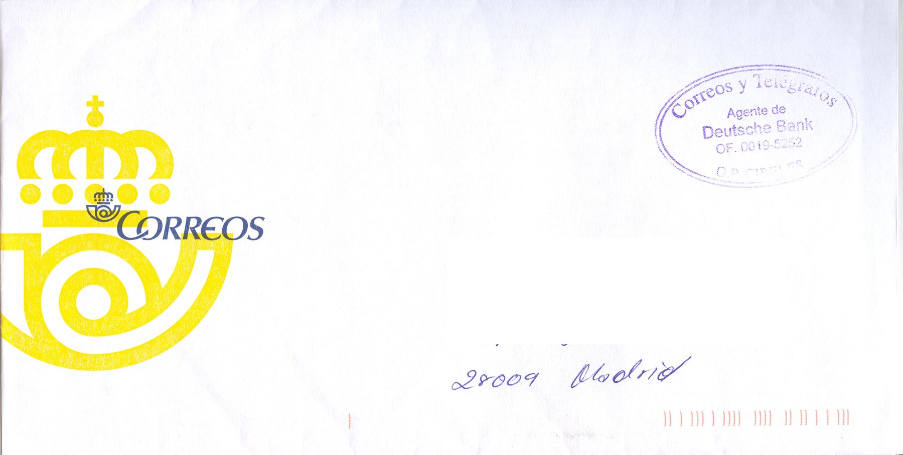 Reproduzco la marca de tampón y el sobre completo recibido.