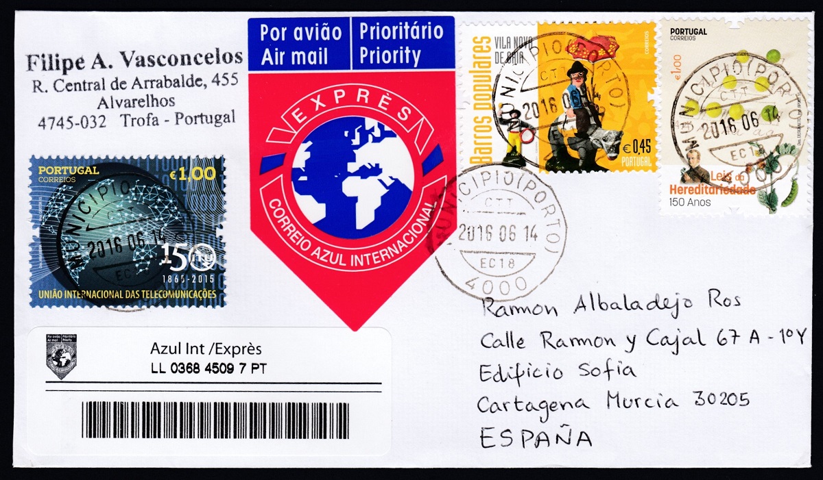 Una que me ha llegado hoy. Nunca había visto esta etiqueta de Correo Azul Internacional: