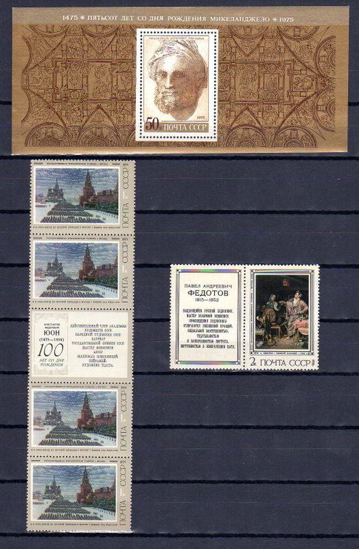 Sellos de Rusia. (1 hojita, bloque de 4 con bandeleta y sello con bandeleta)