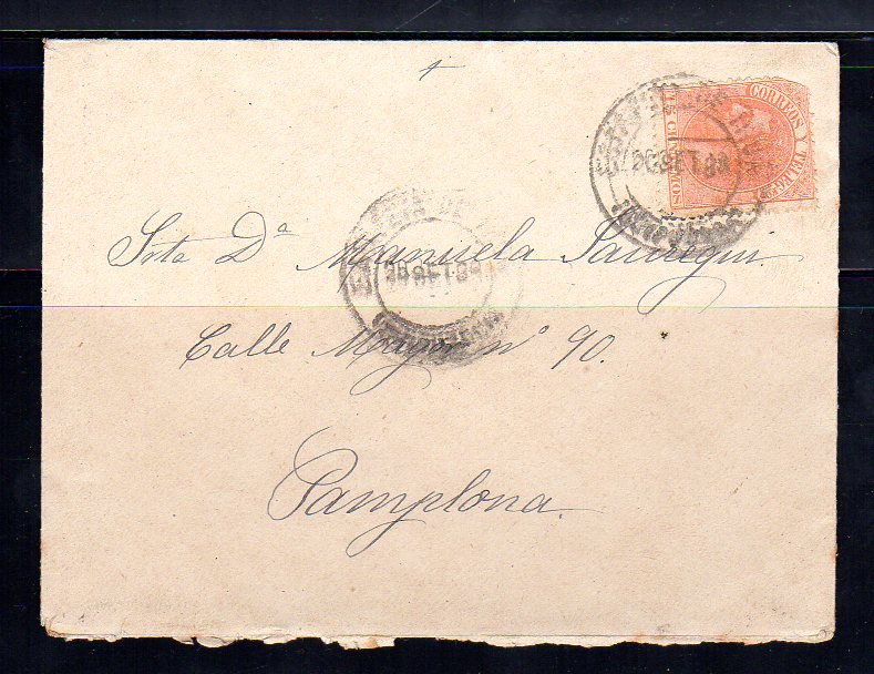 Sobre franqueado con sello 15 cts. Alfonso XII