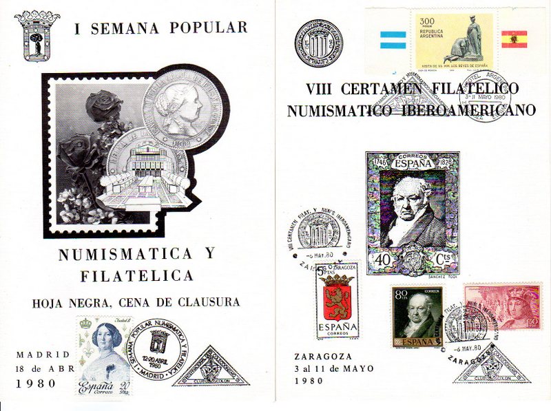Hojas conmemorativas. I semana Popular. VIII Certamen Filatélico Numismático Iberoamericano