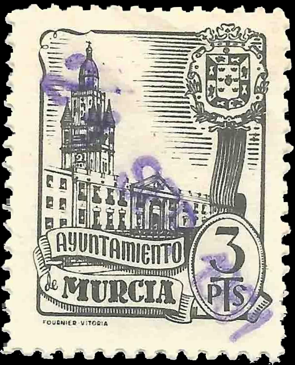 De la serie que dos o tres respuestas atras mostró JOSE....datada en 1958, con valores de 25 cts verde...mas otro de Murcia de 2 pts