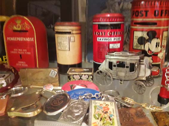 Conjunto de instrumentos, matasellos, lacradores, botones, emblemas, buzones, huchas postales, balanzas, fotografías, sacas, documentos etc. relacionados con el correo y el coleccionismo de sellos.