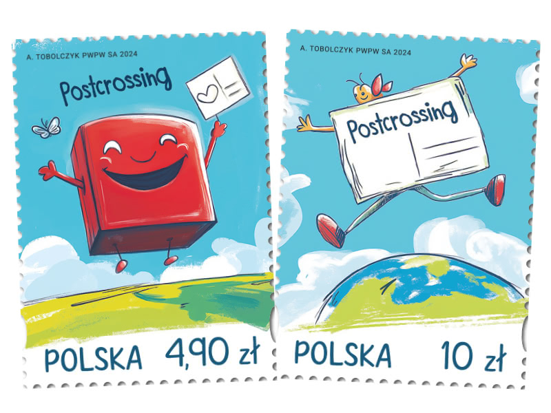 Para finales de este mes La diseñadora Agata Tobolczyk (que también diseñó el sello polaco Postcrossing anterior ) ha ideado este alegre dúo de sellos para alegrar cualquier postal. Se presentan en hojas de 12 sellos y la empresa Polish Security Printing Works está imprimiendo 144.000 unidades de cada sello en Polonia . Los sellos estarán disponibles en las oficinas de correos y también en la tienda online de Correos de Polonia en la fecha de emisión, junto con un elegante sobre de primer día y su alegre matasellos.