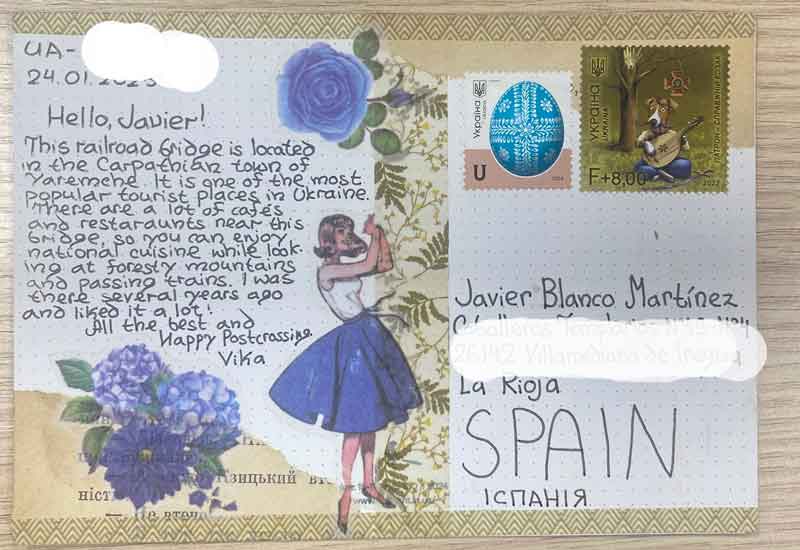 Hola, soy recién llegado. Me presenté hace unas semanas. Yo estuve activo en Postcrossing durante algo más de dos años, sólo con otros países, un poco enganchado por la novedad. Durante ese periodo envié unas 340 postales y recibí 337, algunas se pierden. Ciertamente es muy gratificante cuando se recibe una tarjeta con alguno de los temas que has propuesto y con un bonito franqueo. Has de esforzarte en buscar y elegir las postales para satisfacer a los usuarios. Estimo que al final durante ese periodo pude gastar alrededor de un millar de euros, repartidos en unas seis tarjetas a la semana. Así que decidí parar. Gran parte de ellas se las regalé a un amigo que colecciona postales, me he reservado las tarjetas que se ajustan a mi temática y las que tienen un bonito franqueo.