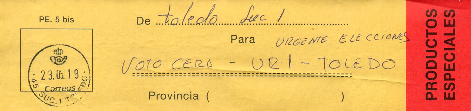Lo realmente raro y quizás inquietante es que no veo etiquetas de VOTO EMITIDO o SOLICITUD DE VOTO...y se nos echa encima el 10 N :shock: