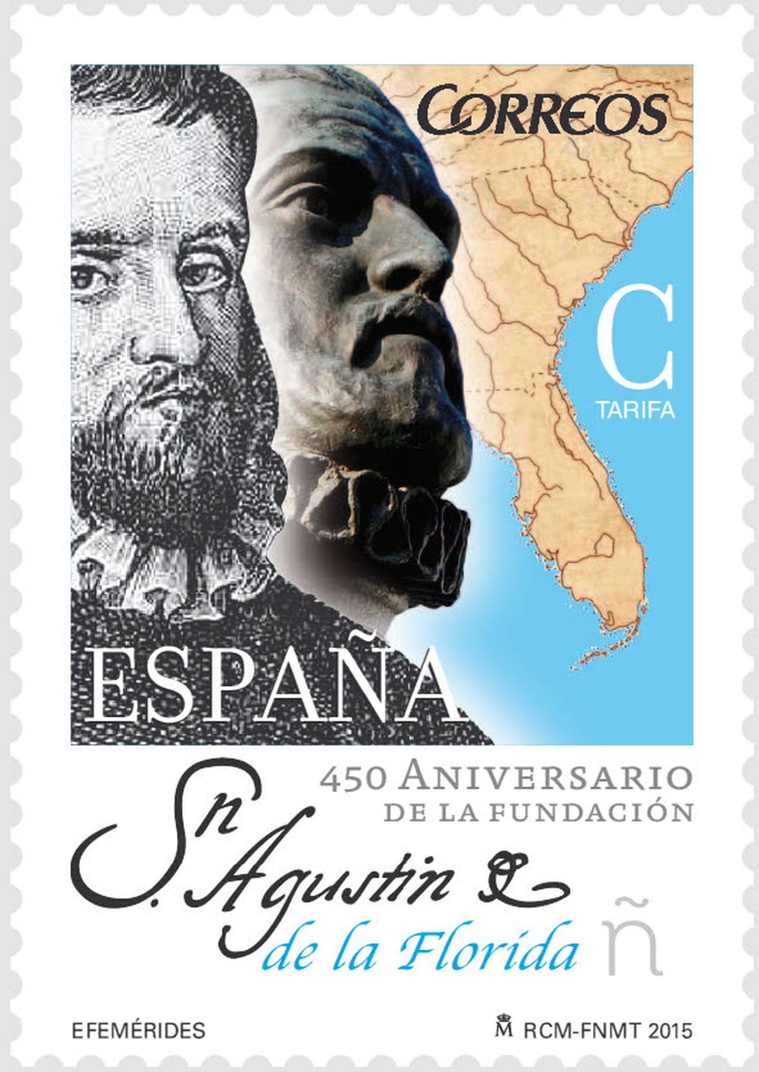 Dentro de la serie denominada «Efemérides», Dios mediante, el día 18 de septiembre de 2015 se emitirá un sello de correo conmemorativo del «450 Aniversario de la Fundación de San Agustín de la Florida». Fundada en 1565, por el marino asturiano Pedro Menéndez de Avilés, San Agustín de la Florida es la ciudad más antigua del territorio continental de Estados Unidos.