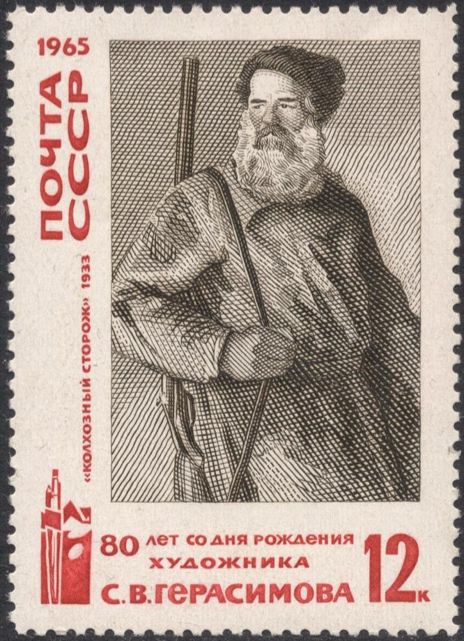 PD. Reedito el post para aprovechar el espacio y agregar dos imágenes más de dos grandes sellos grabados por Mokrousov. Ambos de 1965, uno de Lenin y el otro a partir de una obra del artista S. V. Gerasimov titulada Vigilante de granja. Las imágenes y los datos provienen del gran blog de Adrian que ya hemos mencionado en páginas anteriores y que citamos otra vez. Es la mejor base de datos que hay en la red sobre el mundo de los grabadores: http://stampengravers.blogspot.com.es/. Visitarlo si podéis, porque además precisamente en este enlace se asegura que la gran calcografía dedicada a los reyes españoles en 2004 fue obra de Juan Carlos Heras Vicario (reina) y Alfredo de Oro Sanz (rey), y no sólo de este último como creíamos y así lo dijimos unas páginas atrás (http://www.agoradefilatelia.org/viewtop ... &start=220). Realmente, como dice el propio Adrian en su gran artículo, algo muy inusual. Sirva también, pues, esta posdata, para corregir o al menos poner en cuarentena aquella atribución única que hicimos.