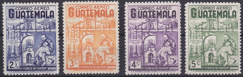 Sellos de GUATEMALA (Pie : "Grabados en acero Guatemala - CHY") conmemorativos del Hermano PEDRO DE BETHANCOURT