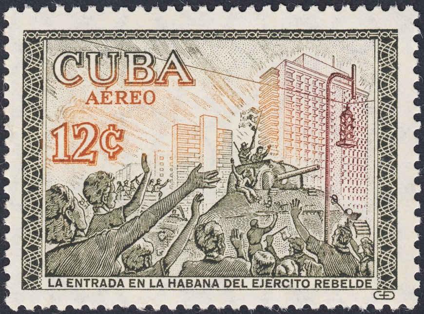 Los tres sellos intermedios, emitidos en 1960, celebran con júbilo el éxito de la revolución.