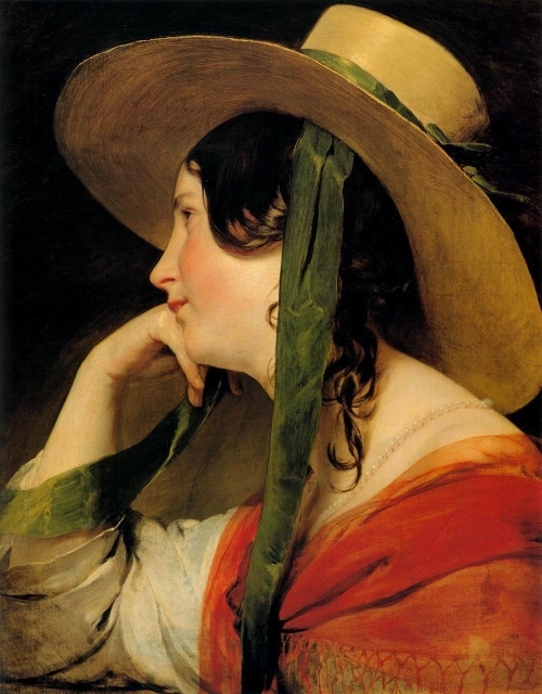 Delicioso ejercicio de autonomía artística de Herbert Toni Schimek (1905-1982). A partir del óleo Una muchacha con sombrero amarillo, obra de 1835 de Friedrich von Amerling, Schimek transmuta el embeleso esperanzado de una joven en la melancolía dolida de una mujer. Una muestra sutil y admirable de la capacidad recreadora de este artista del buril.