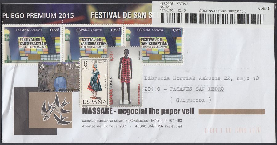 Te habrás fijado también, que todos los sellos del anverso tienen relación con tu provincia, y todos los del reverso con Valencia, la ciudad del vendedor. Además con matasellos turístico de Xátiva.