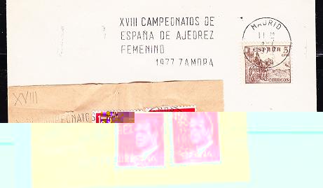 Al día de hoy, puedo certificar que salieron ambos con el mismo texto y en el mismo modelo de máquina canceladora, según podéis ver en los dos ejemplares de mi colección. Por desgracia el de Zamora es solo un fragmento. Pero, voy a consultar a mi amigo zamorano Juan Antonio Ardila, gran amante del ajedrez y la filatelia, a ver si me puede conseguir un sobre entero.