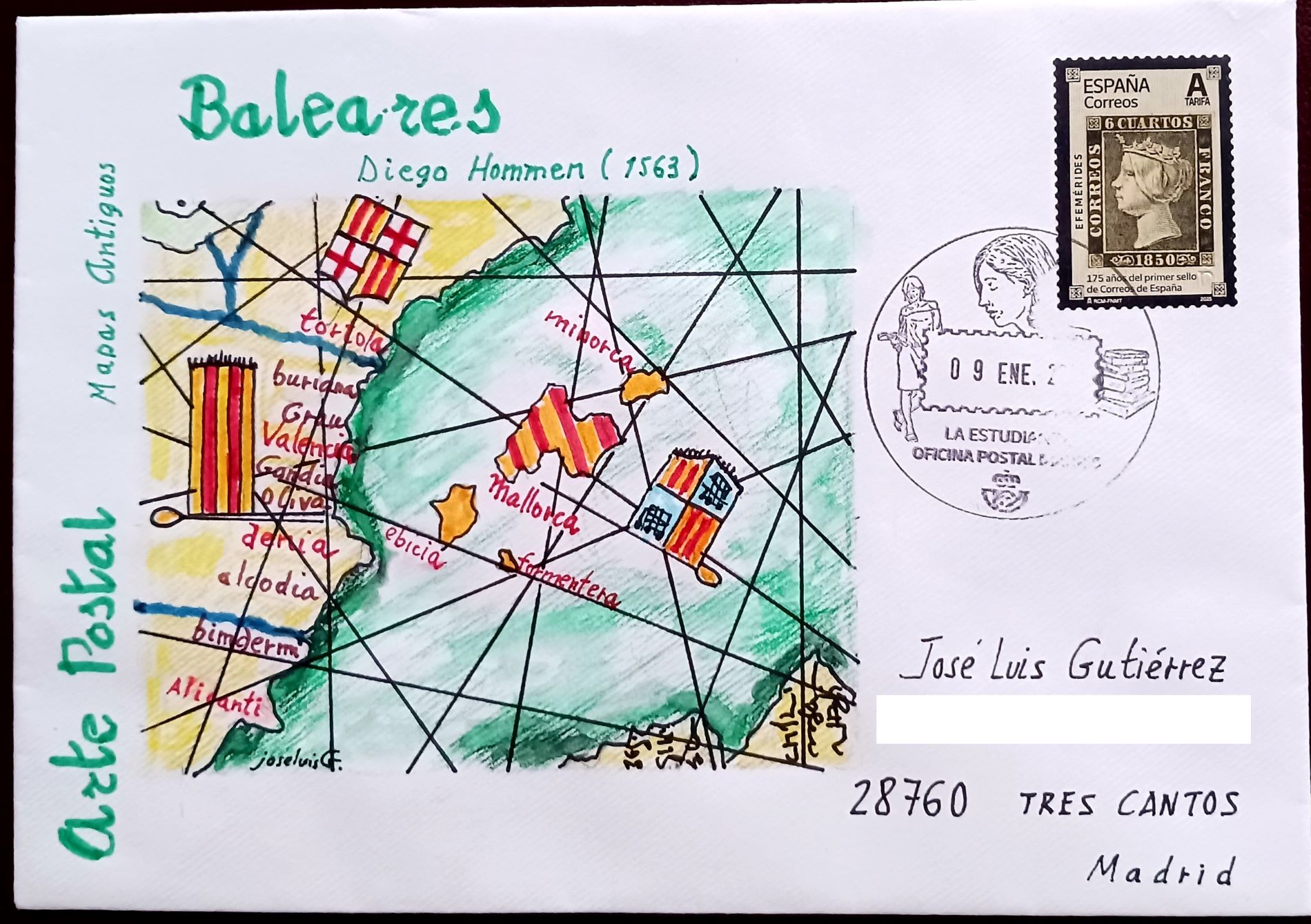 Me restaría añadir, como hacemos muchas veces, la "autoenviada", esta vez todo dibujo, y que dediqué al mapa cartográfico de Diego Hommem referido a las Islas Baleares.