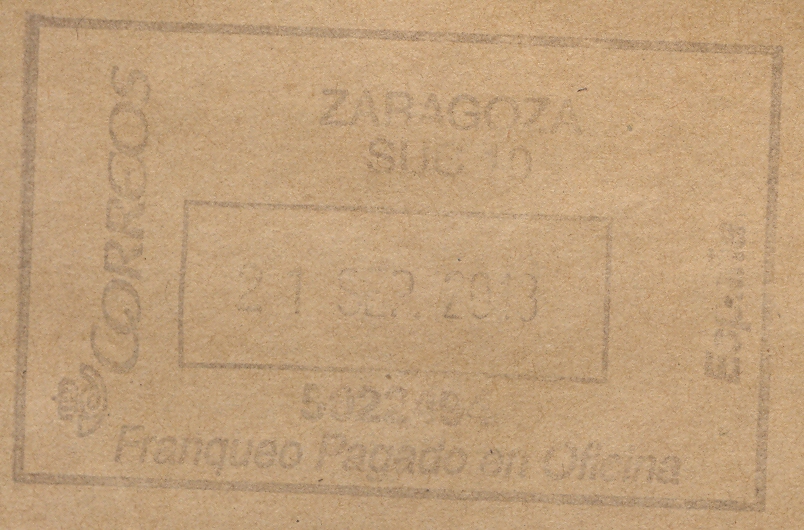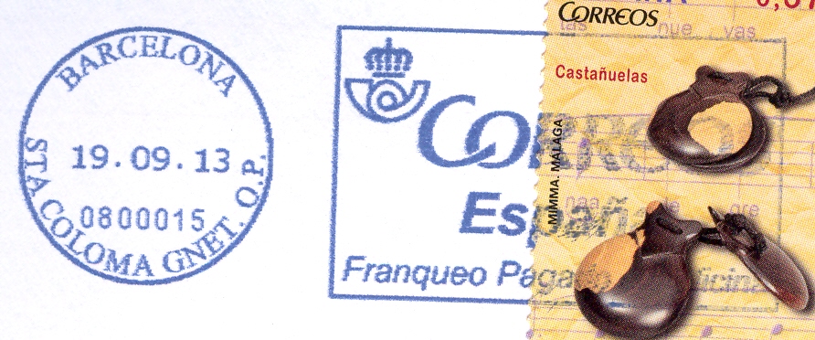 Por si acaso esta marca fuese distinta de la catalogada, ya que en el catálogo figura el nombre de la oficina en tres líneas y aquí aparece en dos líneas, la indico. Es la siguiente: