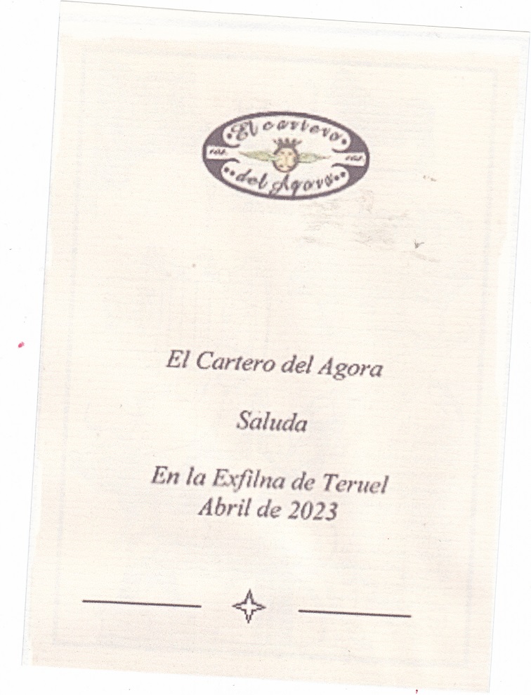 Recibida carta de la Exfilna con pegatinas del aniversario del ágora y tarjeta de Teruel. Muchas gracias Cartero.