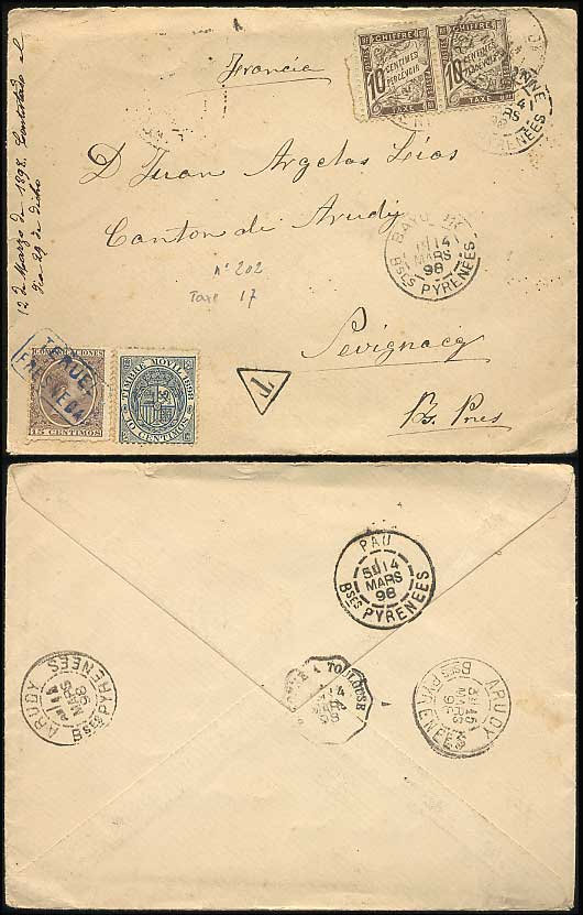 Mario, aprovechando que el "Pelón" pasa por Sevilla.....¿podrías aclararme por qué el siguiente sobre con sellos de Pelón para 25 cts. según correo ordinario a Francia, lleva el fechador sobre los sellos de 31 DIC 1896 y sobre el frente de 1 ENE 1897? ¿Se fue el empleado de noche de fin de año y se olvidó enviarla el 31 DIC? ¿Existe otro motivo? Gracias de antemano.