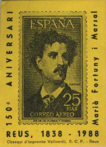 Os dejo una viñeta de REUS (tarragona), adhesiva del año 1988, conmemorativa del 150 aniversario de Fortuny.