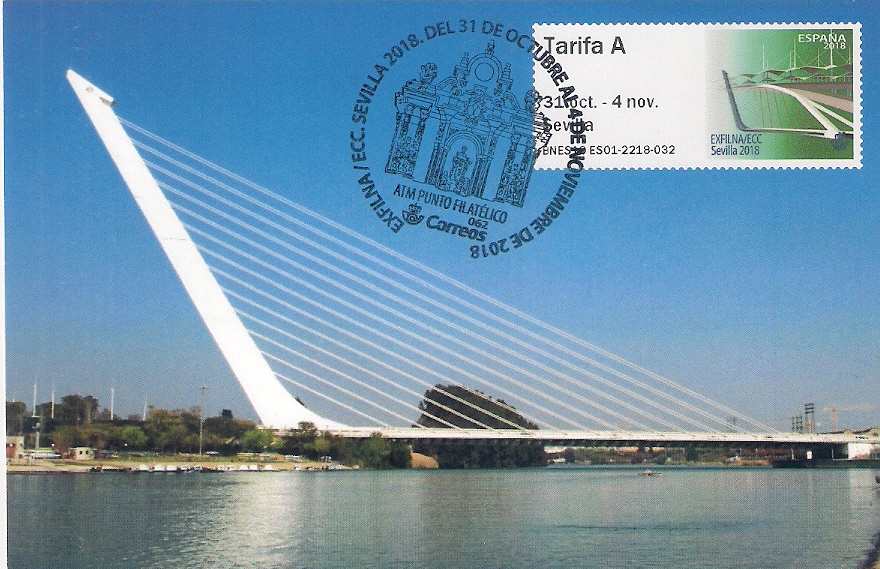 Modelo "Puentes", de la máquina inglesa ES01, matasello especial para el ATM PUNTO FILATÉLICO.