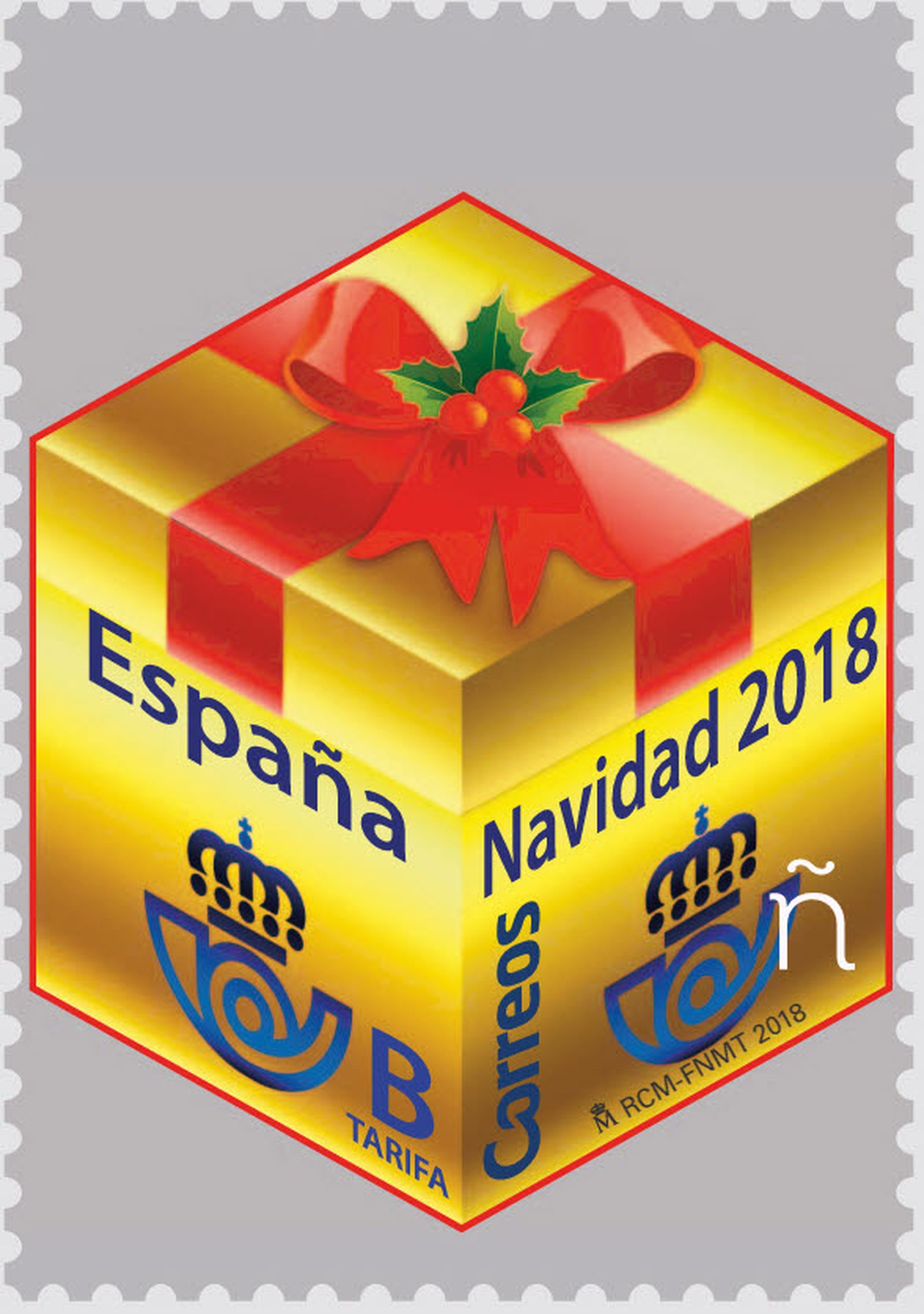 El segundo sello que emite Correos con motivo de la Navidad, representa un paquete de regalo característico de la Navidad, que también se podrá colocar en la Tarjeta Coleccionable de Navidad, con forma de árbol navideño que se inició en el 2016 y que finaliza con este sello.